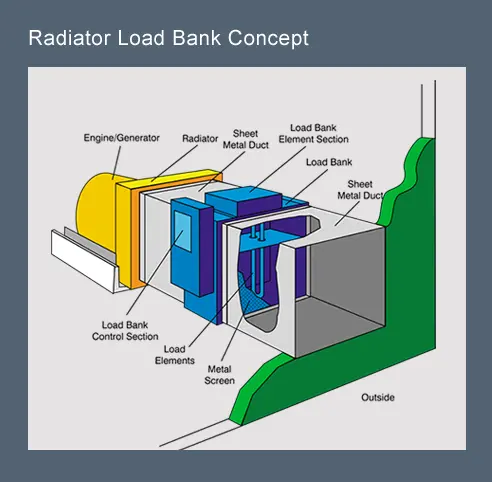 LBD-Series load banks utilize the radiator air outflow of a generator engine to cool the resistive load elements.