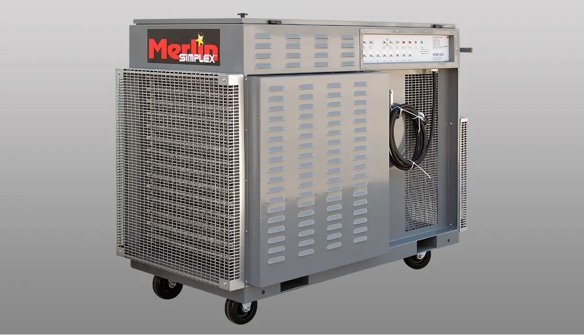 The Simplex MERLIN R, is a RENTAL-DUTY Portable Load Bank designed specifically for data center application in the commissioning and testing of chiller plants, generator systems and UPS systems. The Merlin is a medium capacity, fully portable, resistive load bank system. Loads are arranged and stepped, manual application. Unique to the Merlin R is the 100%, 500kw rating at both 416v and 480v via operator toggle switch.