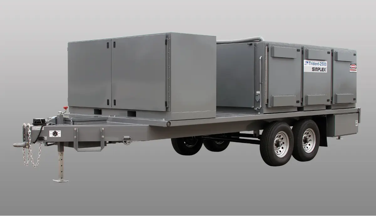 The Simplex Trident 2500 Trailer load bank is ideal for field testing in the performance of start-up and commissioning activities, service contracts and engine generator maintenance. Rentals are available in 2500kw capacities. Operator interface is via touchscreen. Multiple Tridents may be networked together to yield total capacities of tens or hundreds of megawatts. Simplex trailers are built to DOT specification, NTM DOT certification label.